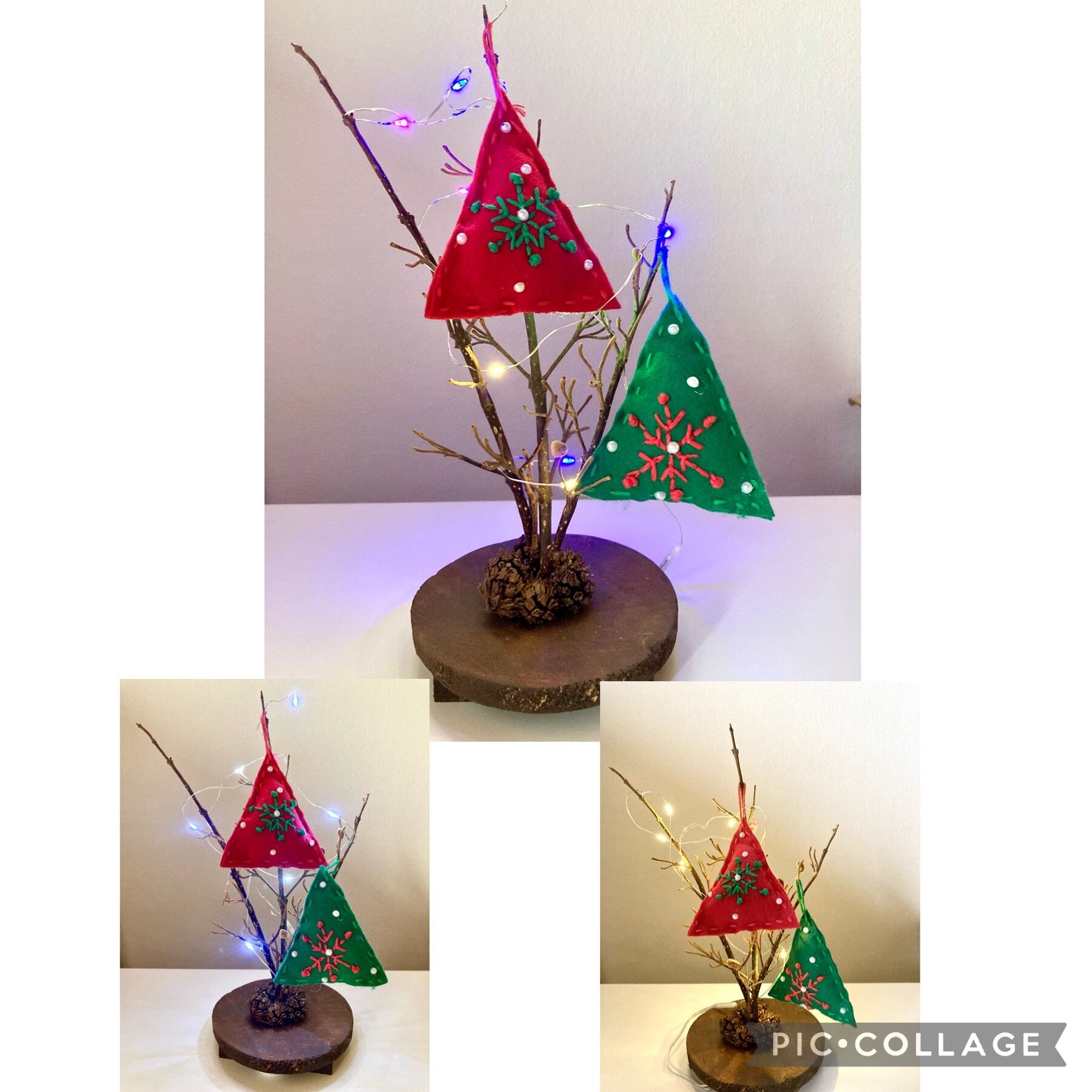 フェルトの結晶柄刺繍(クリスマスカラーの赤と緑)