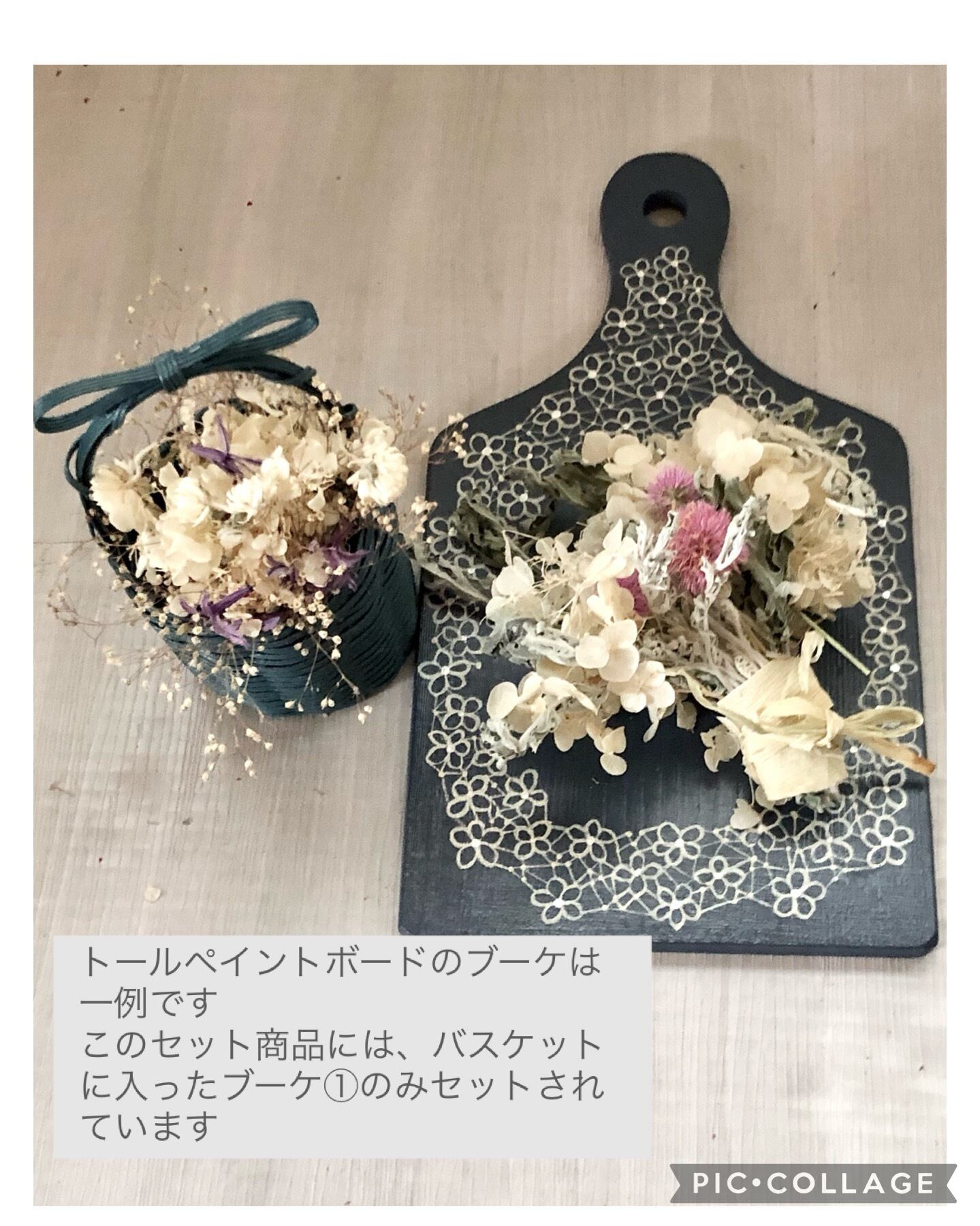 また、バスケットはペン立てにしたり、トールペイントボードは、季節に応じて変えて頂いたり、ご自分で作られたブーケを飾ったりと、いろんな使い方ができます